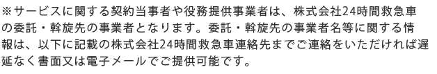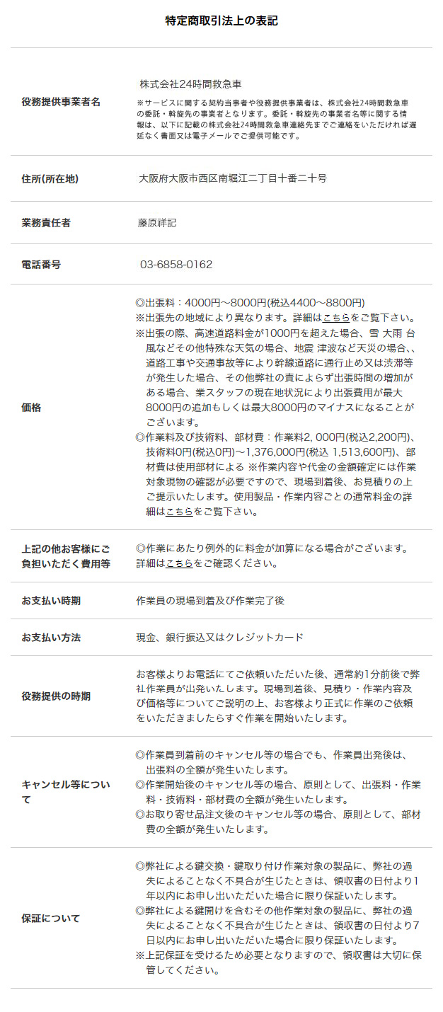 お客様よりお電話にてご依頼いただいた後、通常約1分前後で弊社作業員が出発いたします。現場到着後、見積り・作業内容及び価格等についてご説明の上、お客様より正式に作業のご依頼をいただきましたらすぐ作業を開始いたします。 |